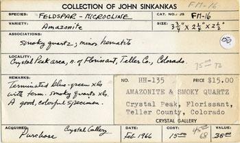 Only a sampling of his more important publications and achievements can be given here (for more information see the references below). John Sinkankas was an extraordinary and influential individual, a true Renaissance man, who in many way helped to shape the modern world of mineral collecting and mineralogical literature studies as we know it.