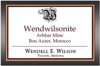 The new species wendwilsonite was described in 1987, and named after Wendell "in recognition of his contributions to mineralogy." He is the 2001 recipient of the Carnegie Mineralogical Award, is a Fellow of the Mineralogical Society of America (1989) and a Senior Fellow of the Geological Society of America (1995), has served as an Advisor to the Board of Trustees of the Arizona-Sonora Desert Museum (1988-1990), and is or has been a member of the Geo-Literary Society, the Mineralogical Association of Canada, the Mineralogical Society (of Great Britain), the Friends of Mineralogy, the Tucson Gem & Mineral Society, the Mineralogical Society of Southern California, and the American Society of Media Photographers.